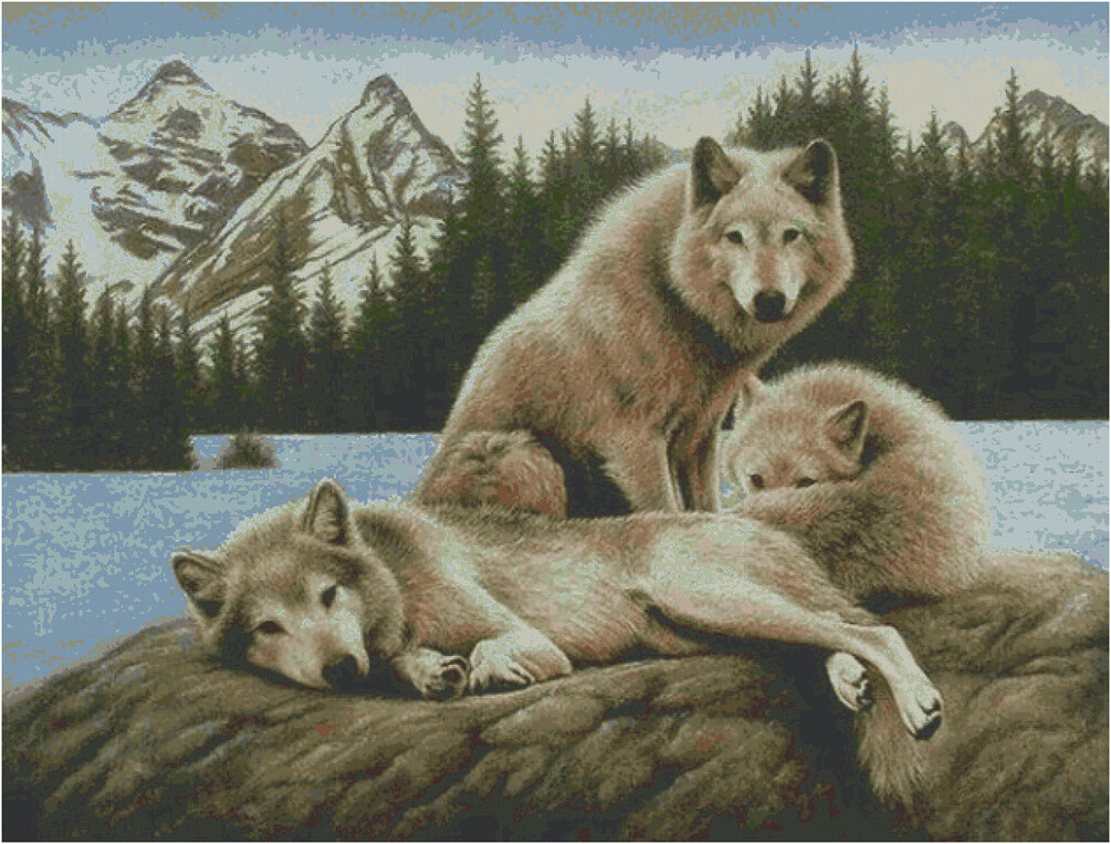 Cross Stitch Pattern Wolves and Mountains, animals, pattern PDF, Wild Horses Cross Stitch Pattern cross stitch vintage