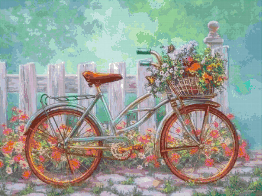 Bicycle of Flowers/ Cross Stitch patterns PDF/ Flowers 120